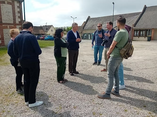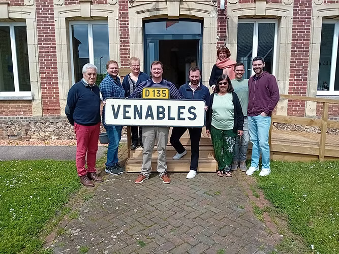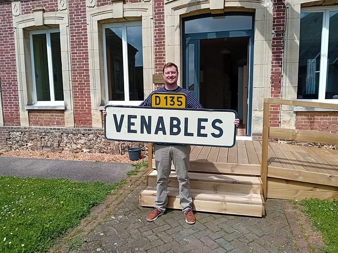 Alan arrive des Etats Unis et habite à Saint Pétersbourg en Floride. Alan profite d’un séjour en France pour faire une halte dans le village de son ancêtre. Ils ont été reçus par Joris Benier Maire de Les Trois Lacs et Patrick Lequette président du CCGVenables.